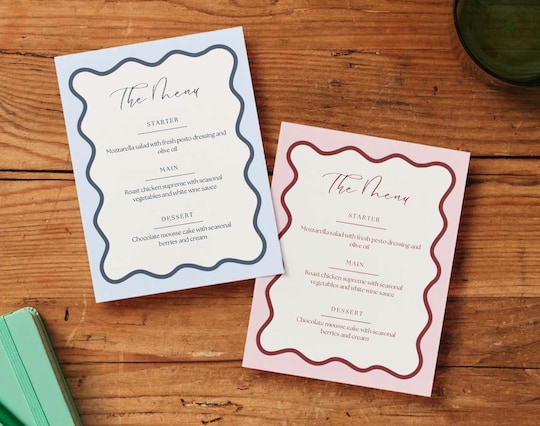 Printed Squiggle Wave Calligraphy Menu Cards | Personalized Birthday, Wedding Menus| Wavy Edge | Squiggly Border