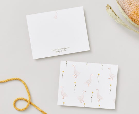 Silly Baby Goose with Flower Note Card | Custom Baby Shower Gift | Stationery Set | From the Nursery of